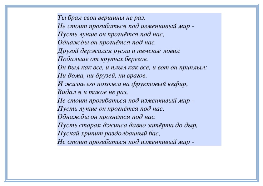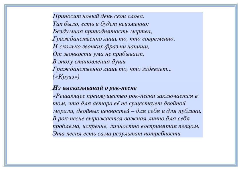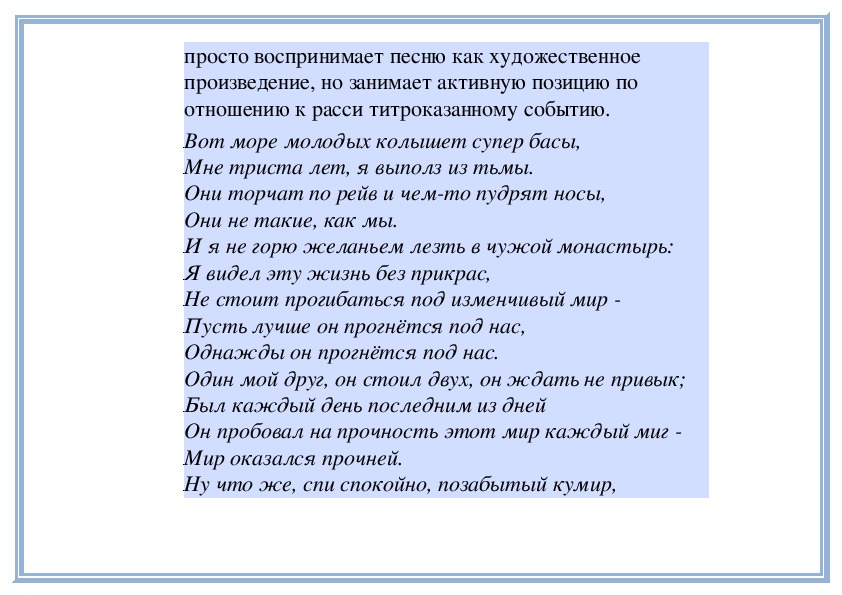 Эта песня есть сама результат потребностиреализовать искреннее отношение к миру