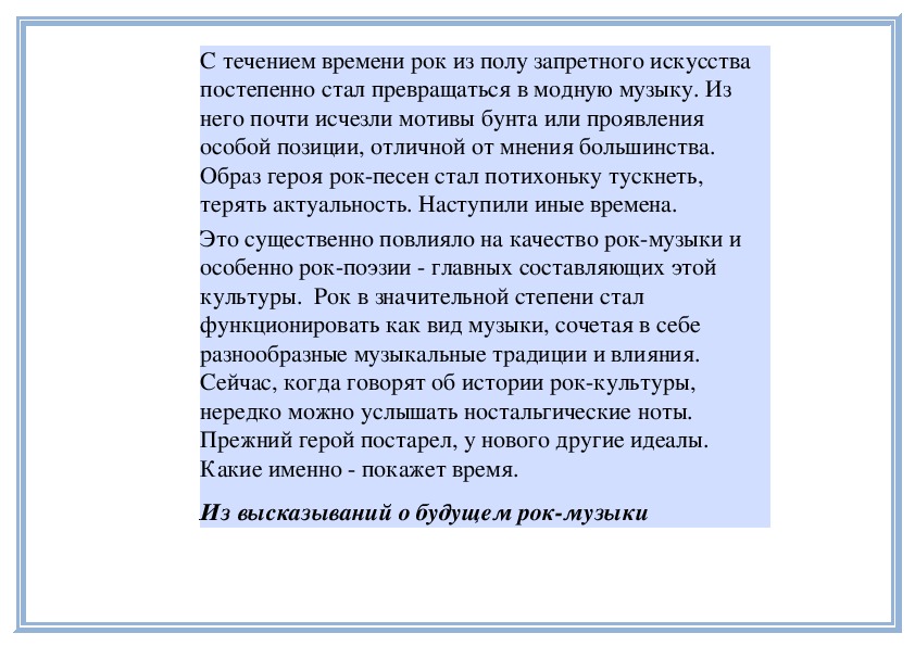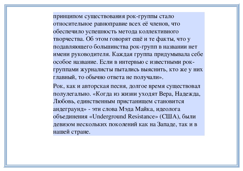 целенаправленности. Поэтому весьма важнымпринципом существования рокгруппы стало