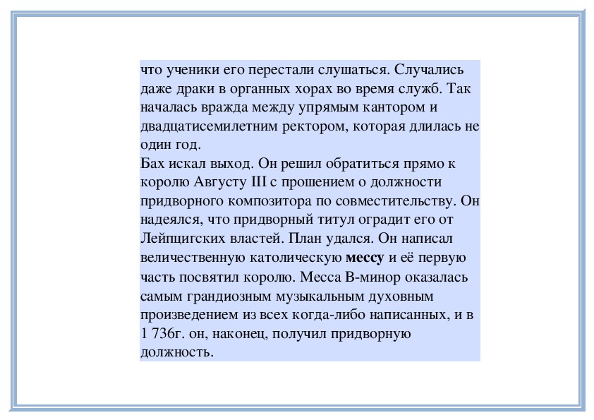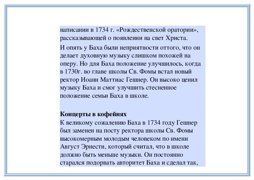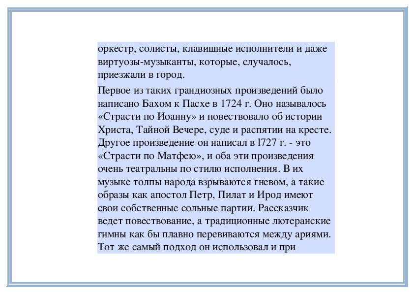 Тот же самый подход он использовал и принаписании в 1734 г. «Рождественской оратории»,