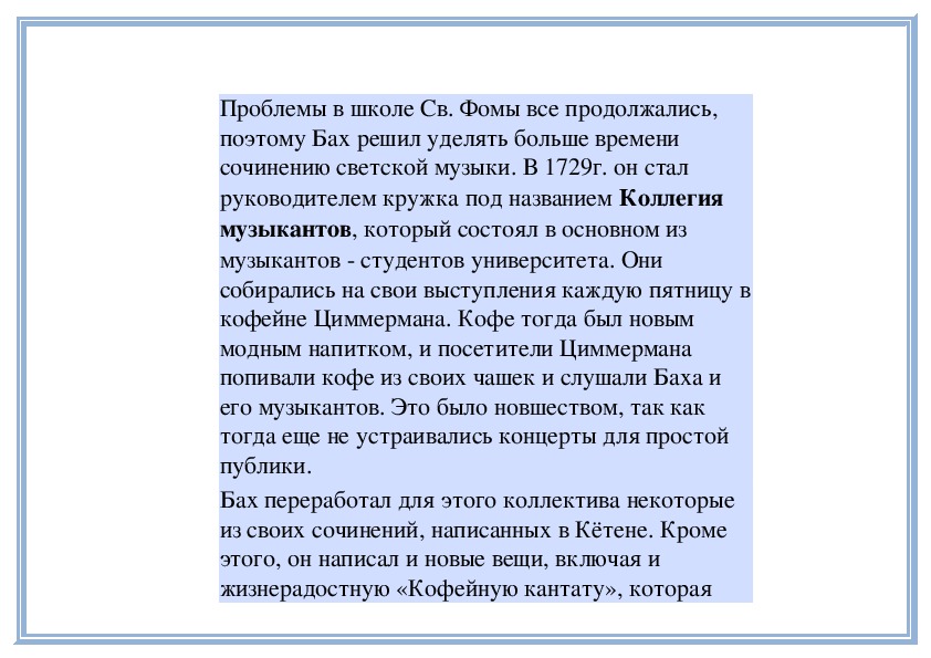 жизнерадостную «Кофейную кантату», котораябыла больше всех его остальных произведений