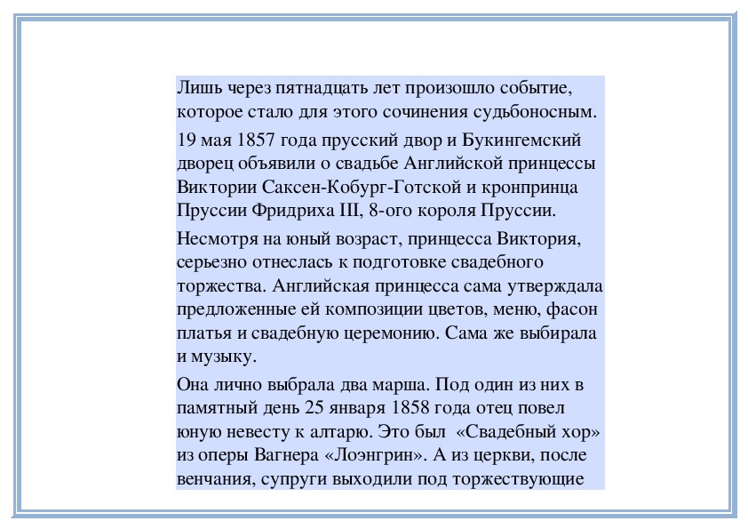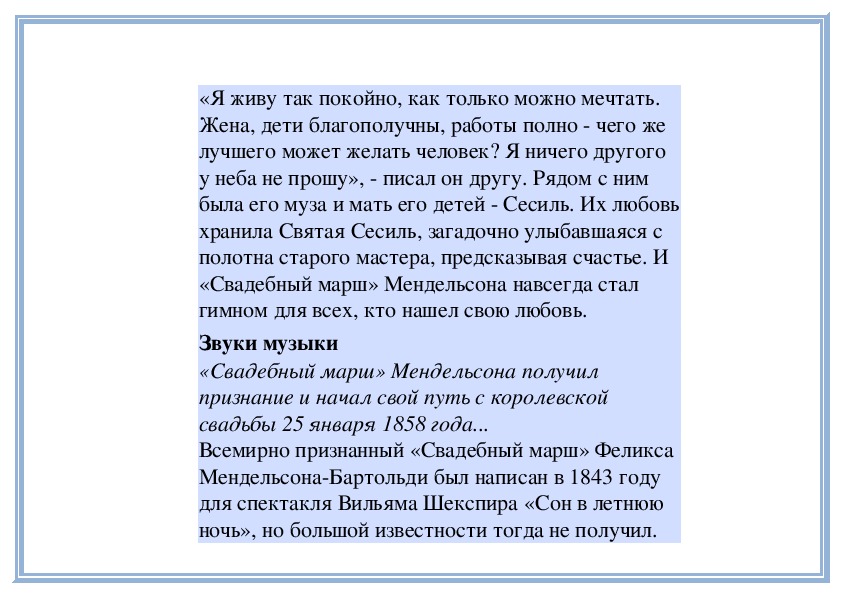 Без этой мелодии невозможно представить себе самый счастливый день жизни. Она - главная музыка свадьбы, называемая «Марш Мендельсона». Проходят десятилетия, а «Свадебный марш» не кажется кризисом жанра, и ему не спешат найти замену. Но мало кто знает, каким человеком был композитор, написавший ее, и был ли любим, и любил ли сам?