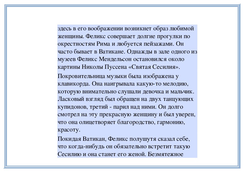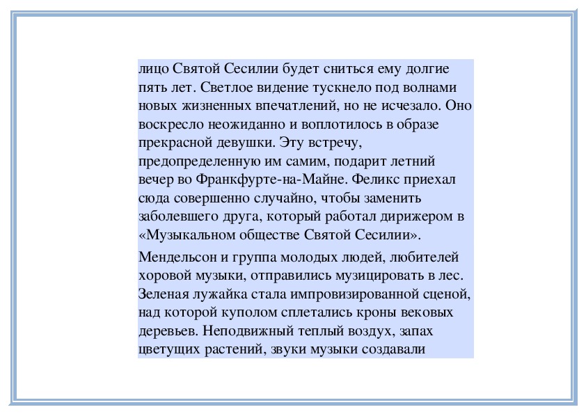 Сесилию и она станет его женой. Безмятежноелицо Святой Сесилии будет сниться ему долгие