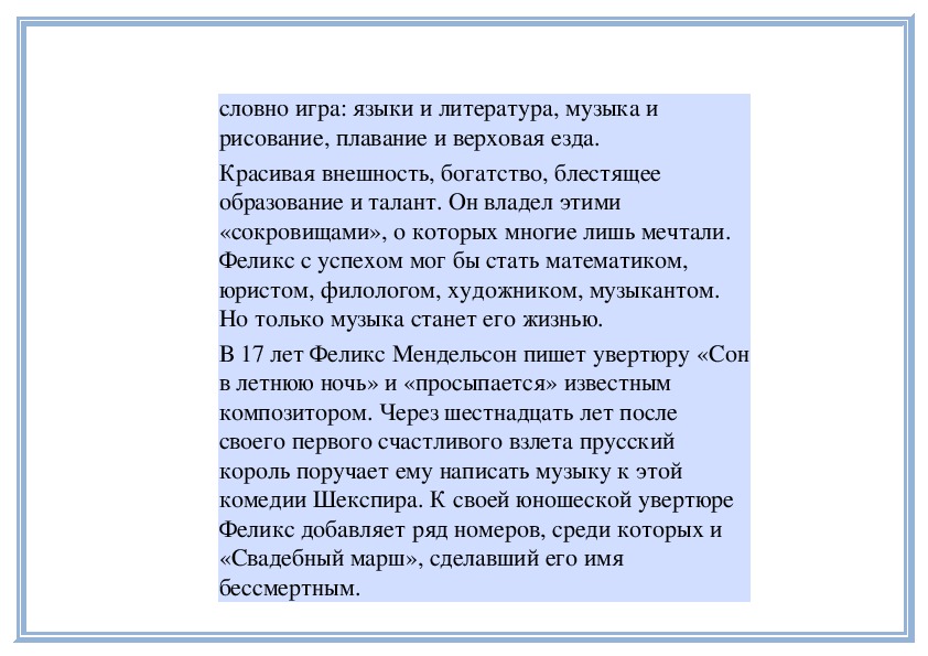 бессмертным.Феликс Мендельсон выступает как пианист,