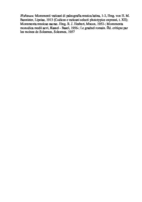 Monumenta musicae sacrae. Hrsg. R. J. Hesbert, Mвcon, 1952; Monumenta