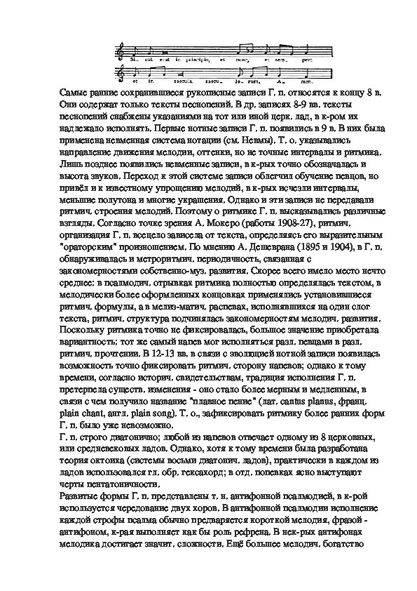 ("медианта") обычно располагается его высшая точка.Самые ранние сохранившиеся рукописные записи Г. п. относятся к концу 8 в.