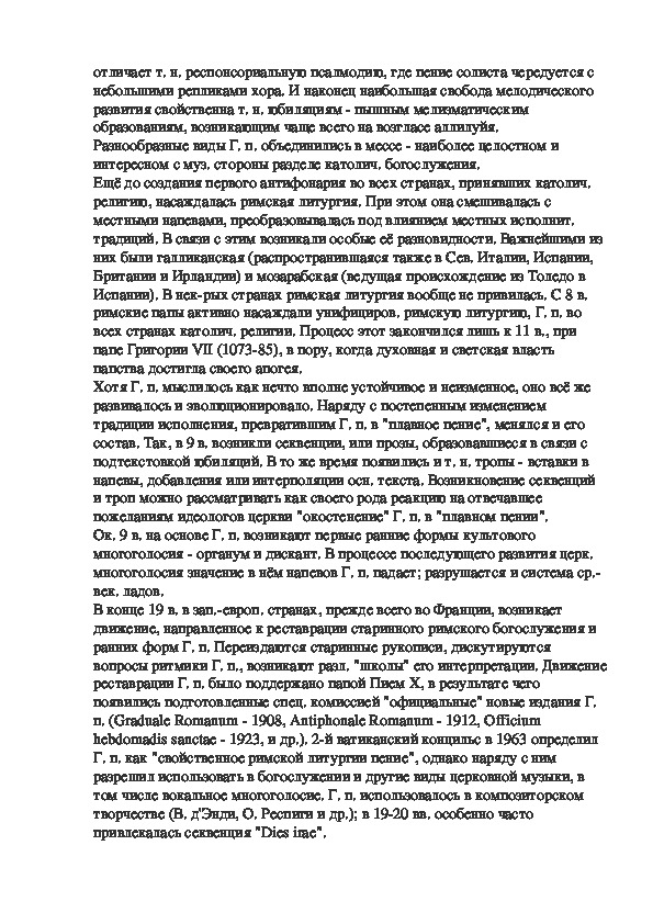 Г. п. как "свойственное римской литургии пение", однако наряду с ним