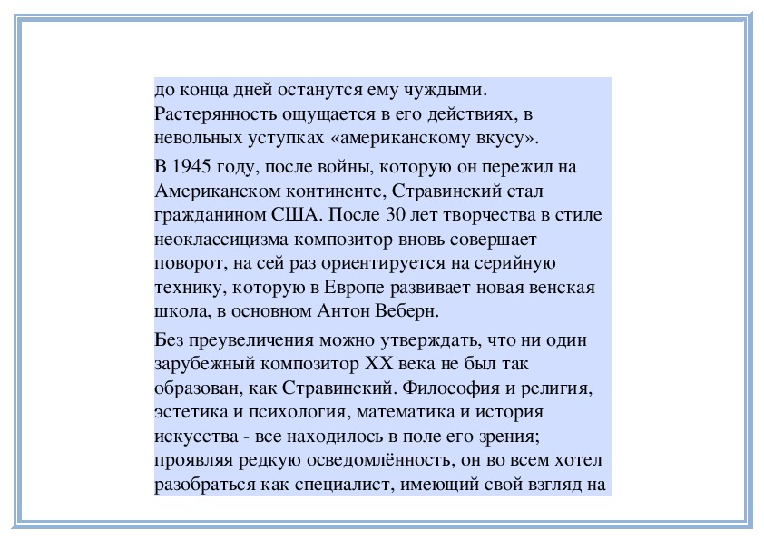 Стравинский был одним из величайших композиторов ХХ столетия, игравшим ключевую роль в развитии самых разных направлений в музыке на протяжении почти полувека...