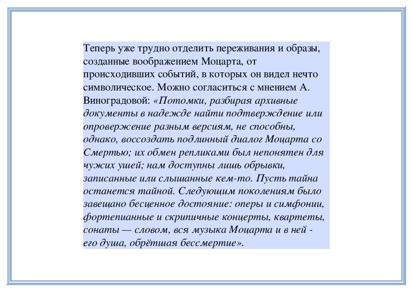 его душа, обрётшая бессмертие».Симфония № 40 соль минор