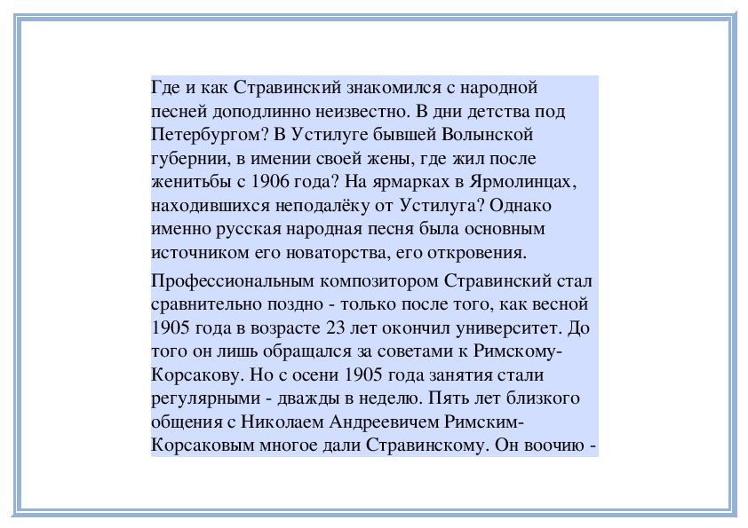 аристократической элиты Парижа.Где и как Стравинский знакомился с народной