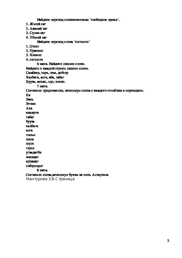 Цель: Создать положительный эмоциональный настрой к учебной деятельности, развивать интерес бурятскому языку.