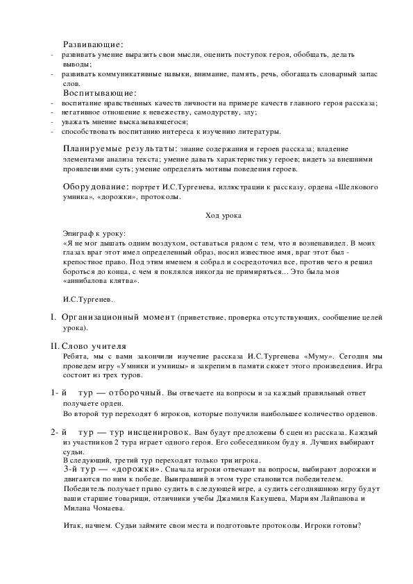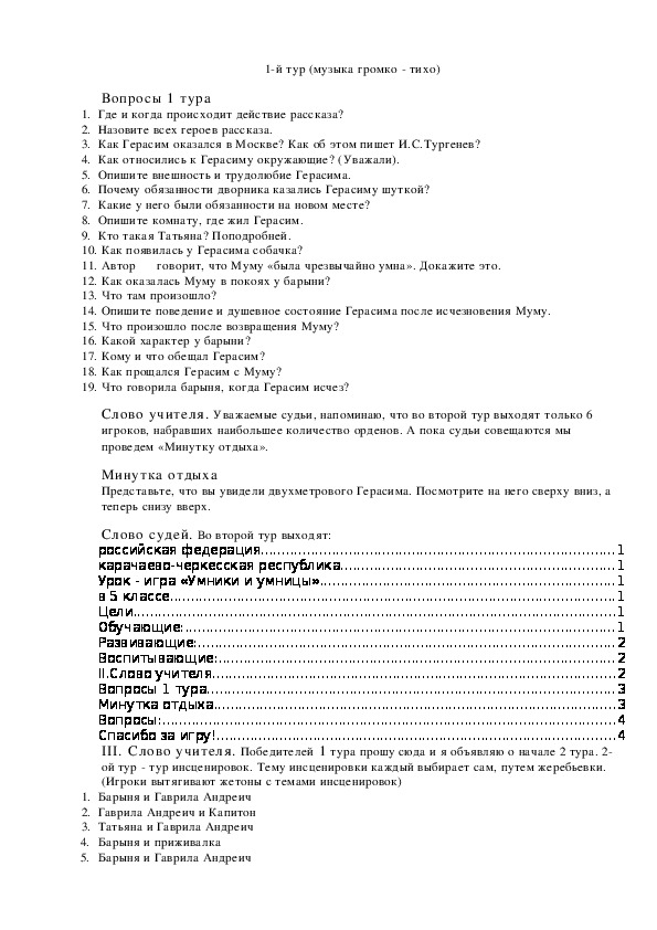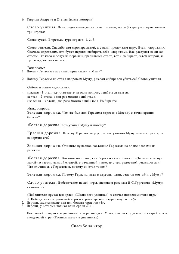 Слово учителя. Победителем нашей игры, знатоком рассказа И.С.Тургенева «Муму»
