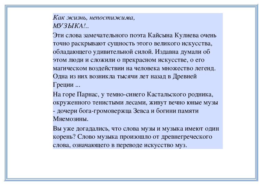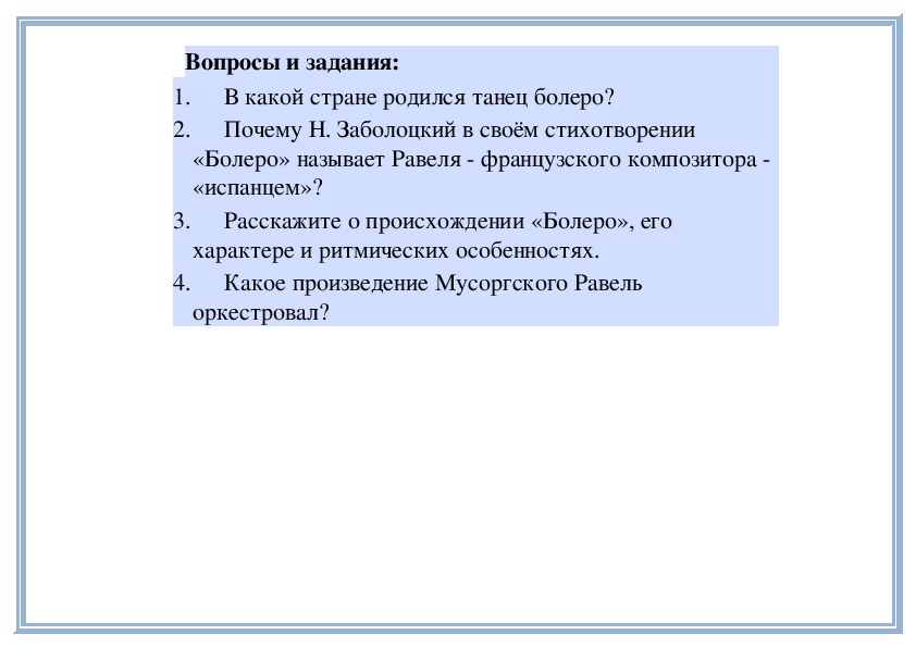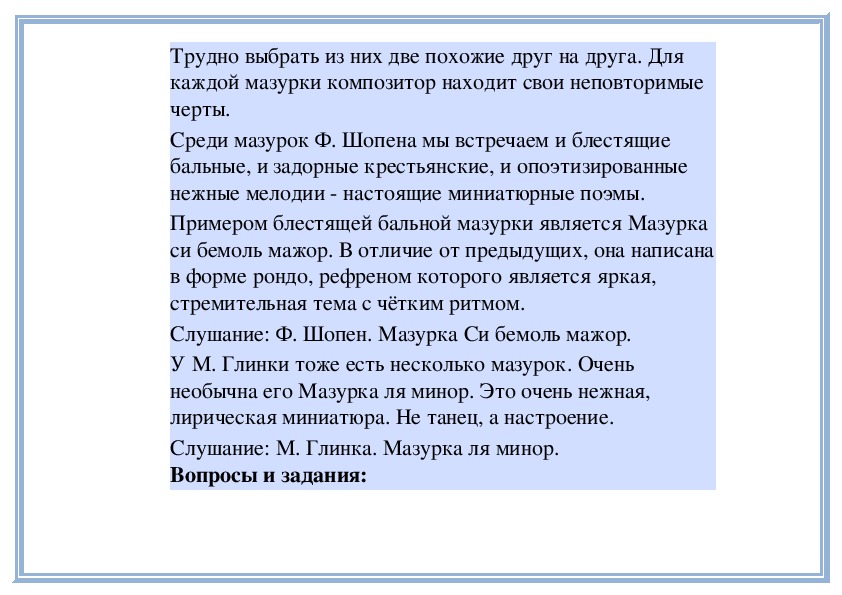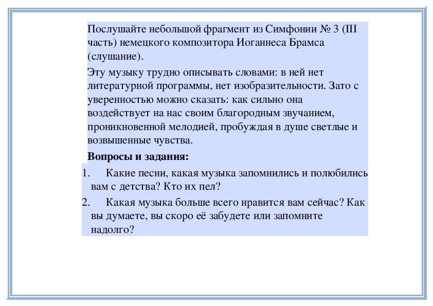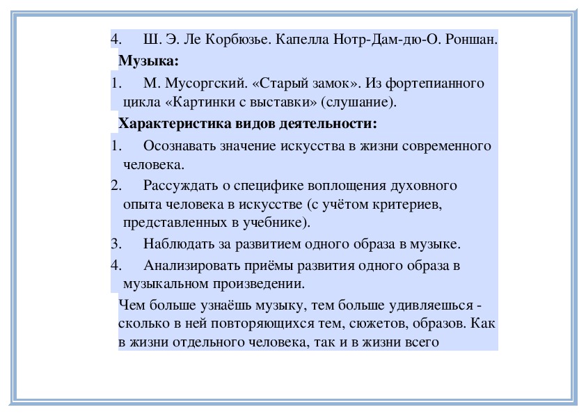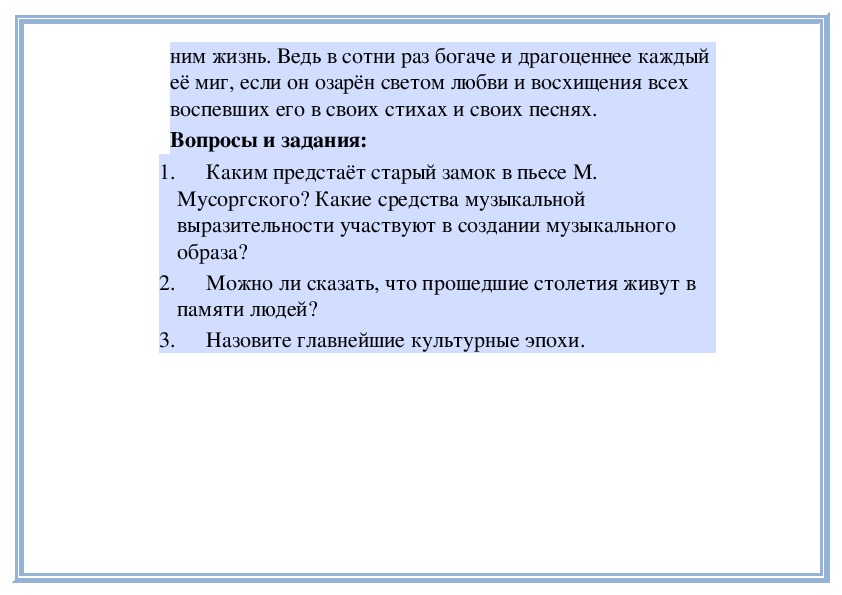 1. М. Мусоргский. «Старый замок». Из фортепианного цикла «Картинки с выставки» (слушание).