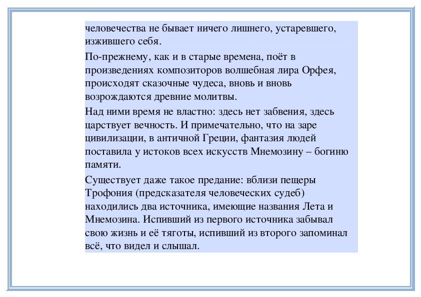 всё, что видел и слышал.Лета и Мнемозина – также имена греческих богинь: