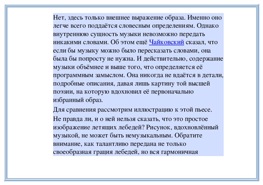 Вот пьеса К. СенСанса «Лебедь». Её музыка передаёт