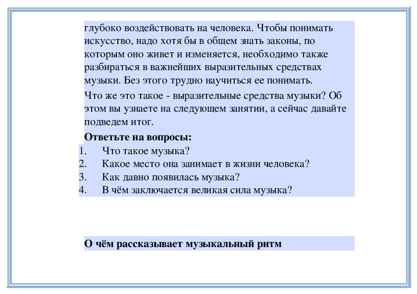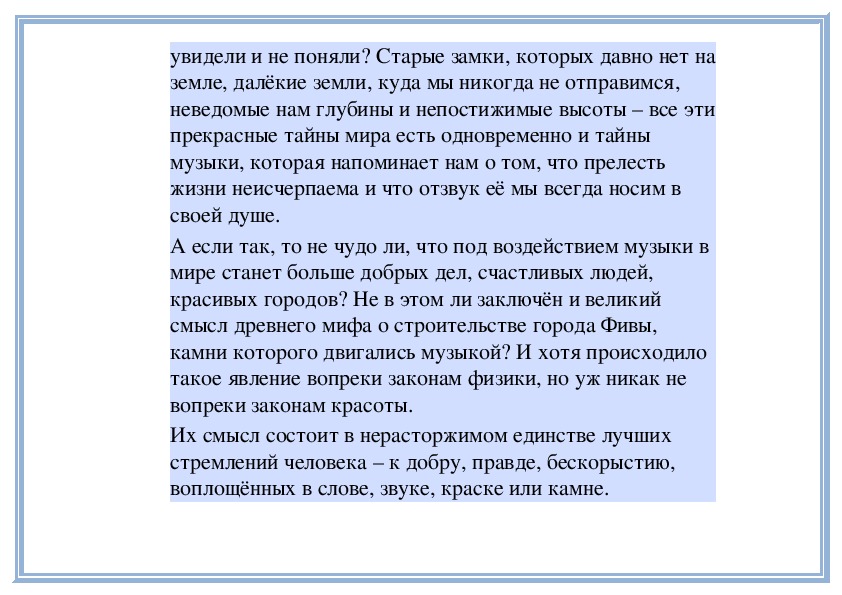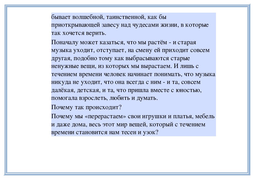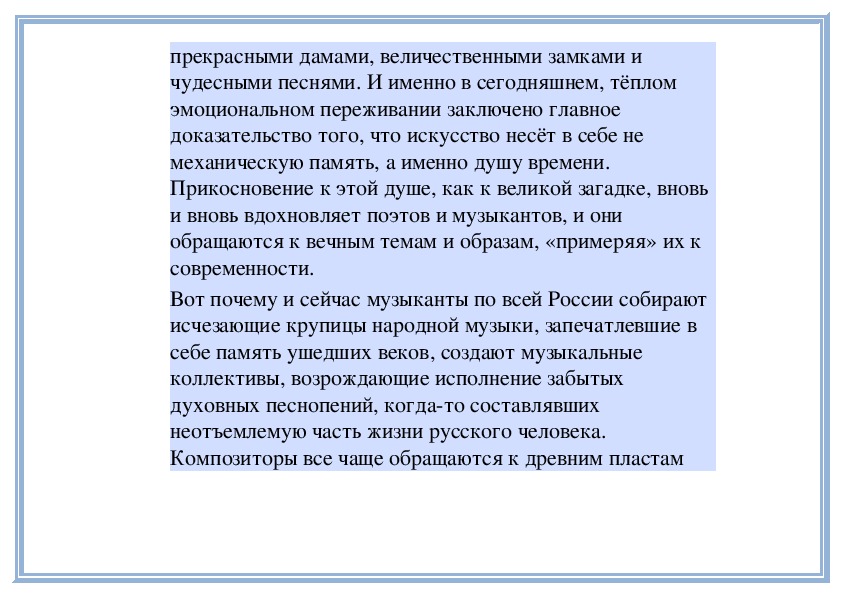 3. Ощущение времени в произведениях искусства (на примере пьесы «Старый замок» из фортепианного цикла «Картинки с выставки» М. Мусоргского).
