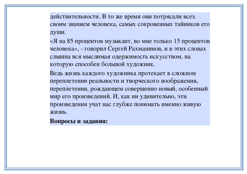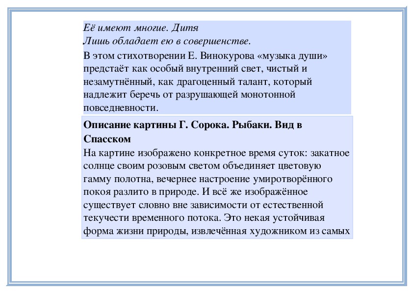 2. Рассуждать о специфике воплощения духовного опыта человека в искусстве (с учётом критериев, представленных в учебнике).