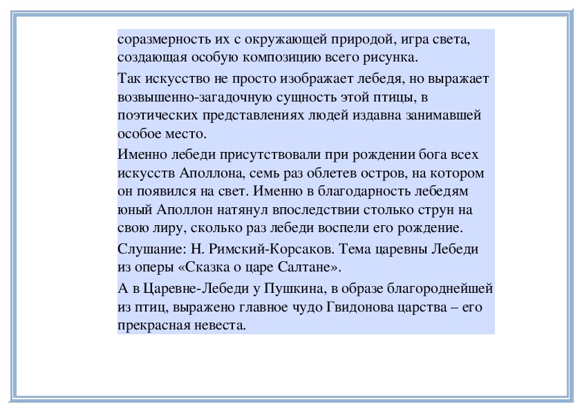 Слушание: Н. РимскийКорсаков. Тема царевны Лебеди