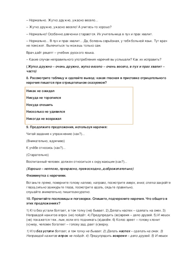 10. Прочитайте пословицы и поговорки. Спишите, подчеркните наречия. Что общего в