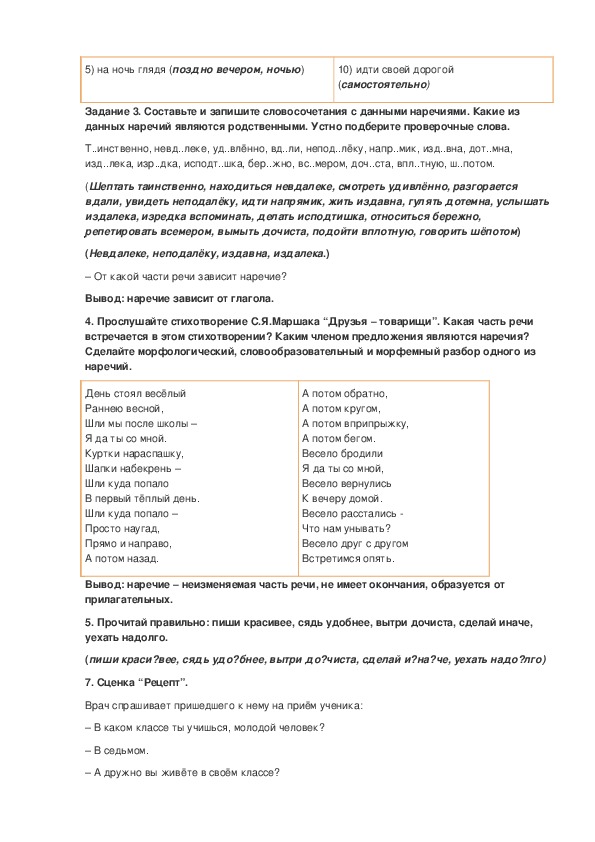 4. Прослушайте стихотворение С.Я.Маршака “Друзья – товарищи”. Какая часть речи