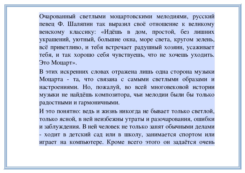 сомнениях и страхах. И что особенно важно, в музыке Моцартаи