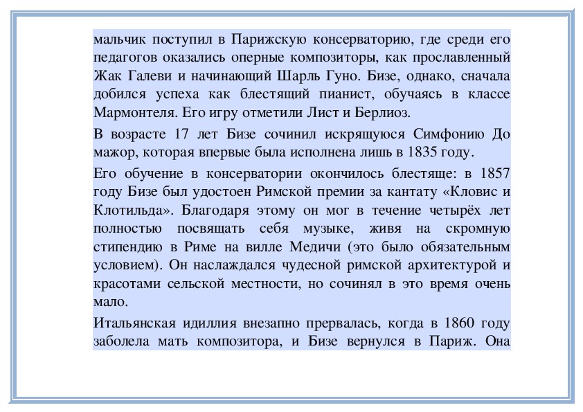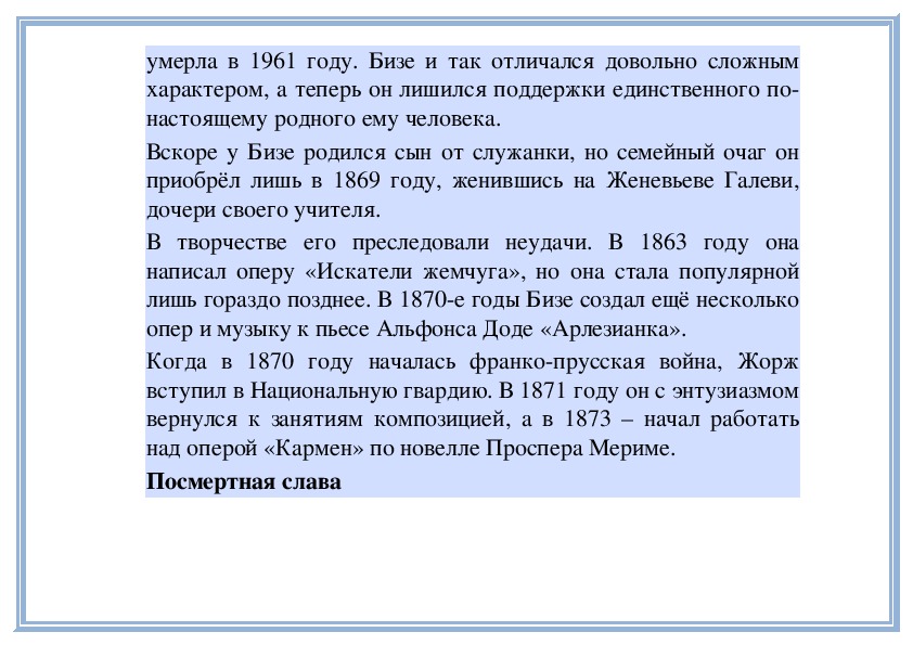 лишь гораздо позднее. В 1870е годы Бизе создал ещё несколько