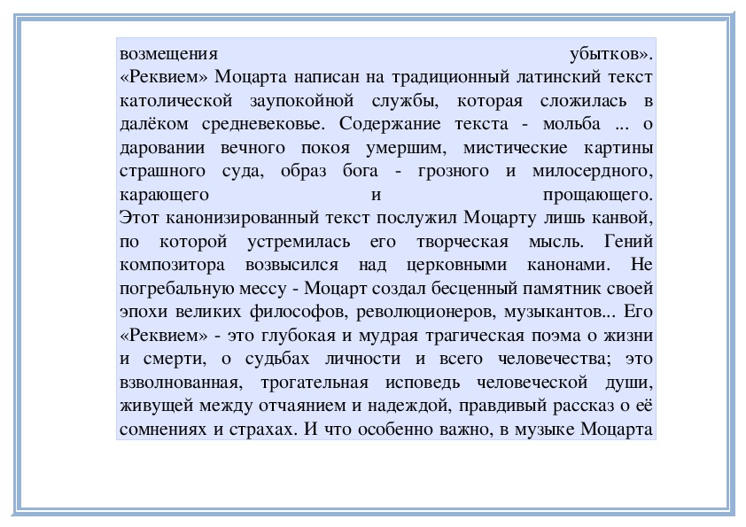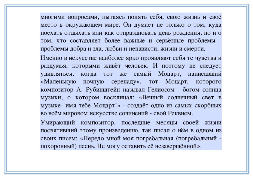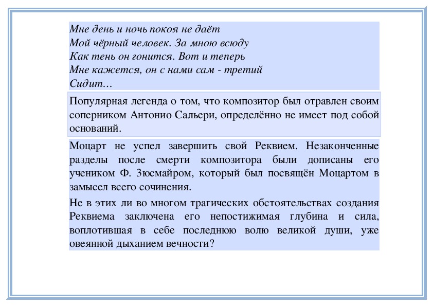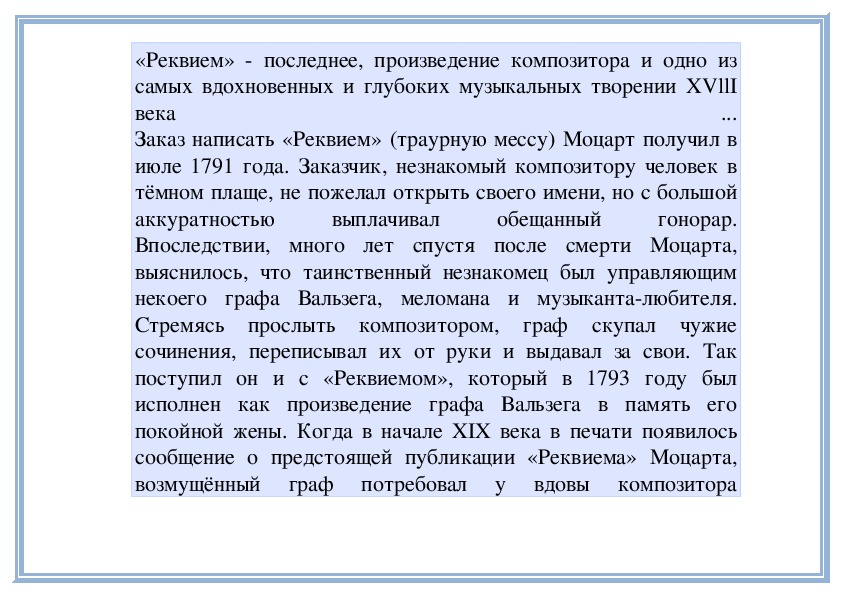 передал этот заказ как поручение очень важного лица. Моцарт с