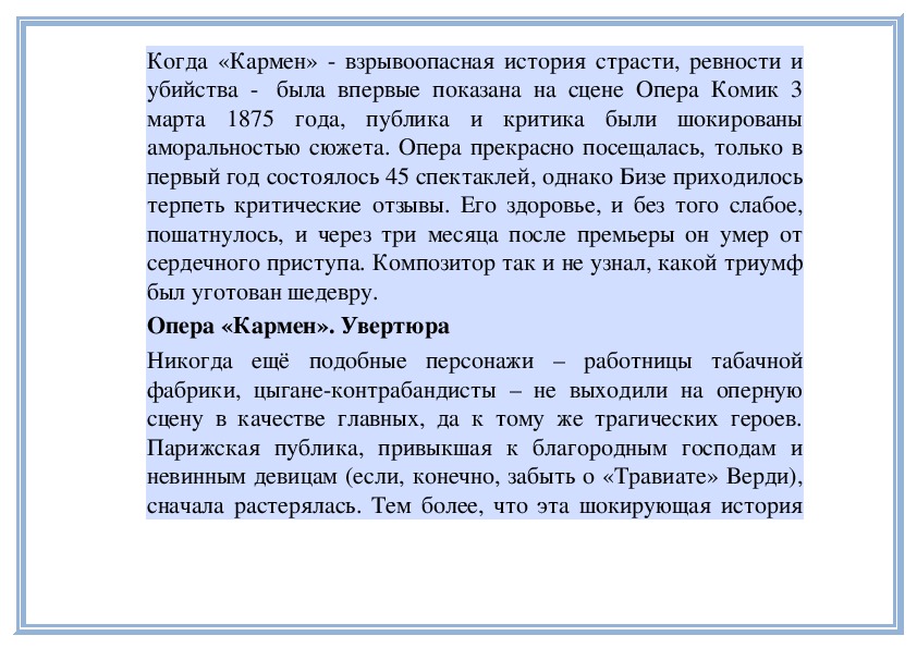 1. Ж. Бизе. Увертюра к опере «Кармен» (слушание).