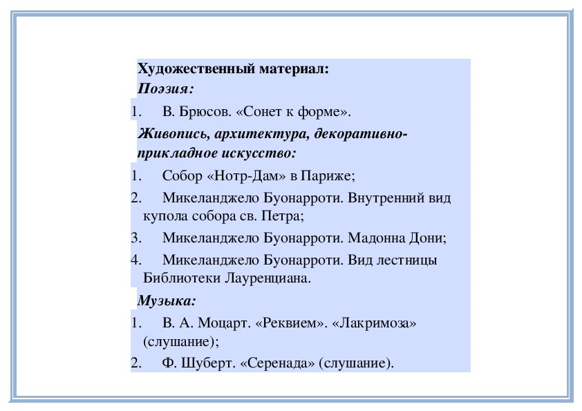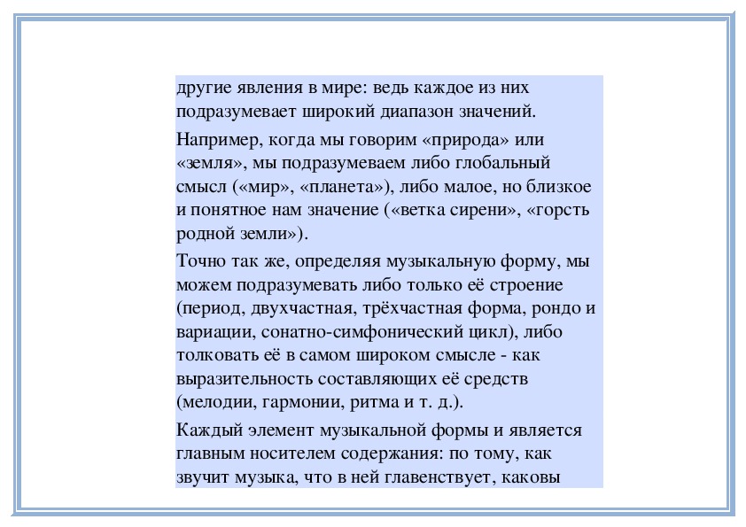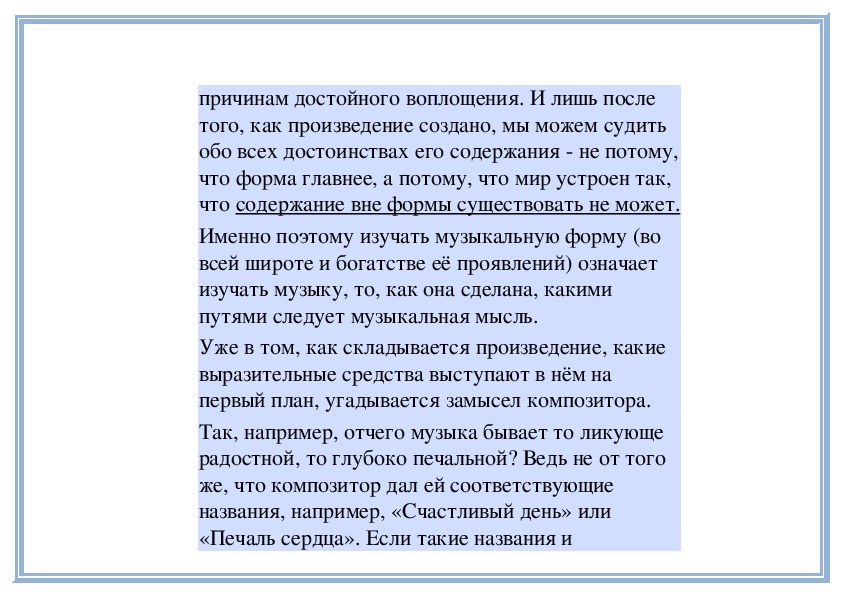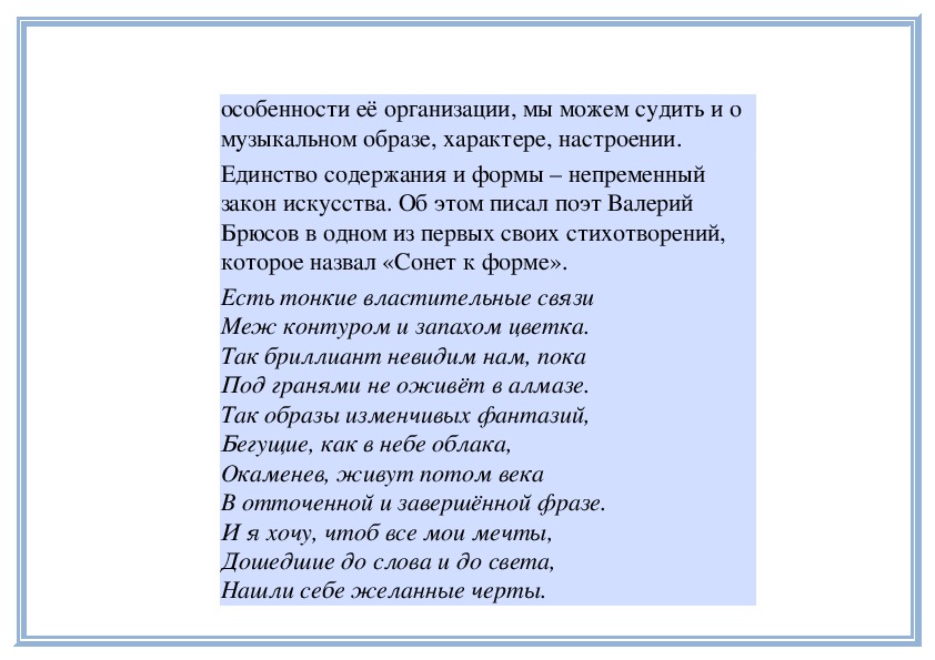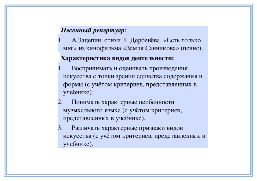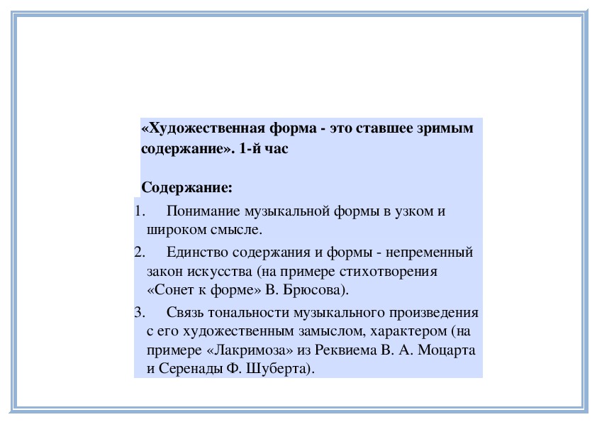 2. Воспринимать и оценивать музыкальные произведения с точки зрения единства содержания и средств выражения.