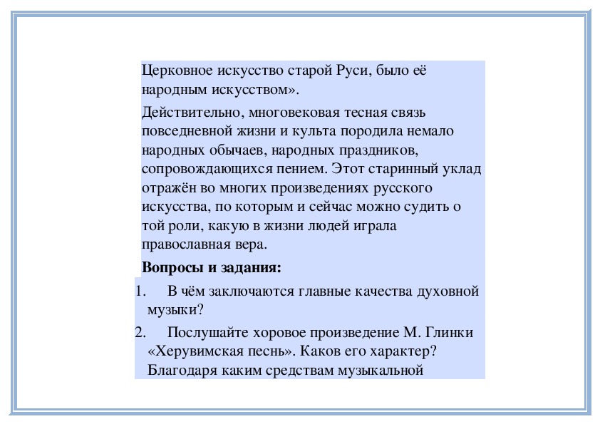 Вопросы и задания:1. Почему в русском искусстве так часто