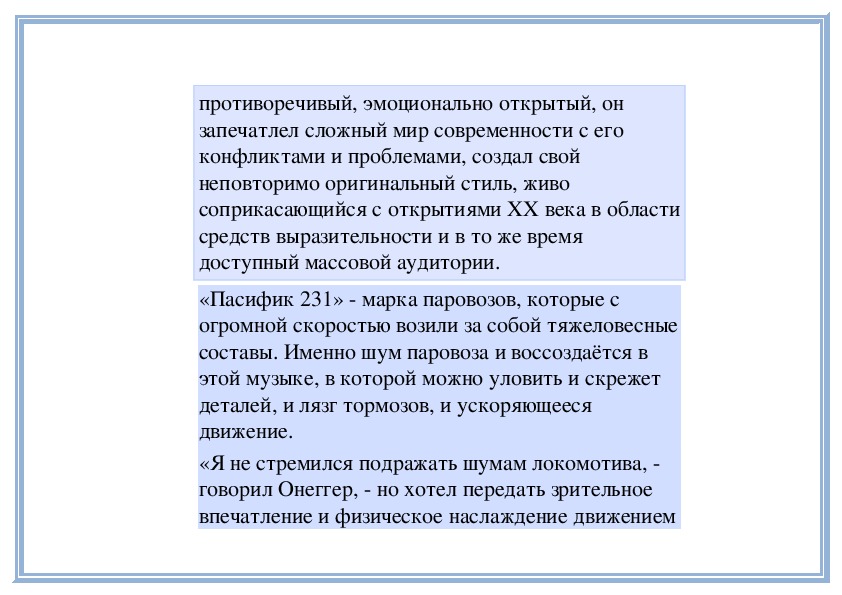 Музыка:1. А. Онеггер. «Пасифик 231». Фрагмент