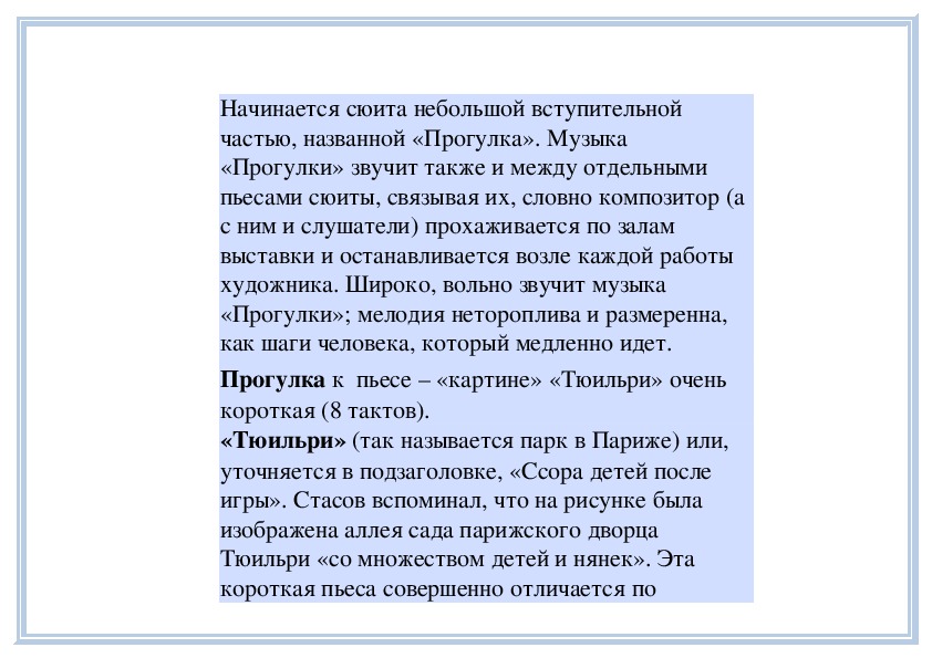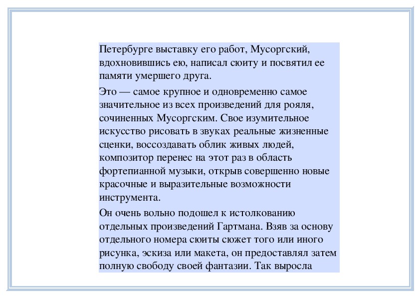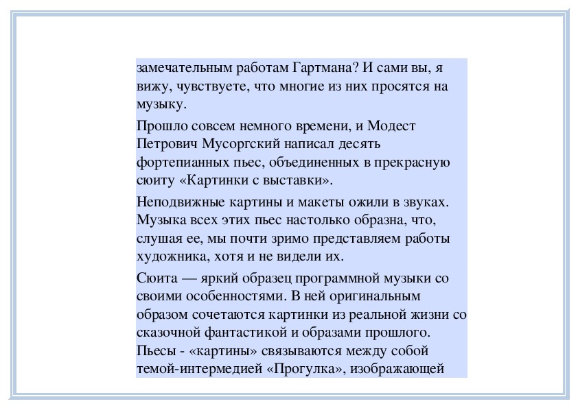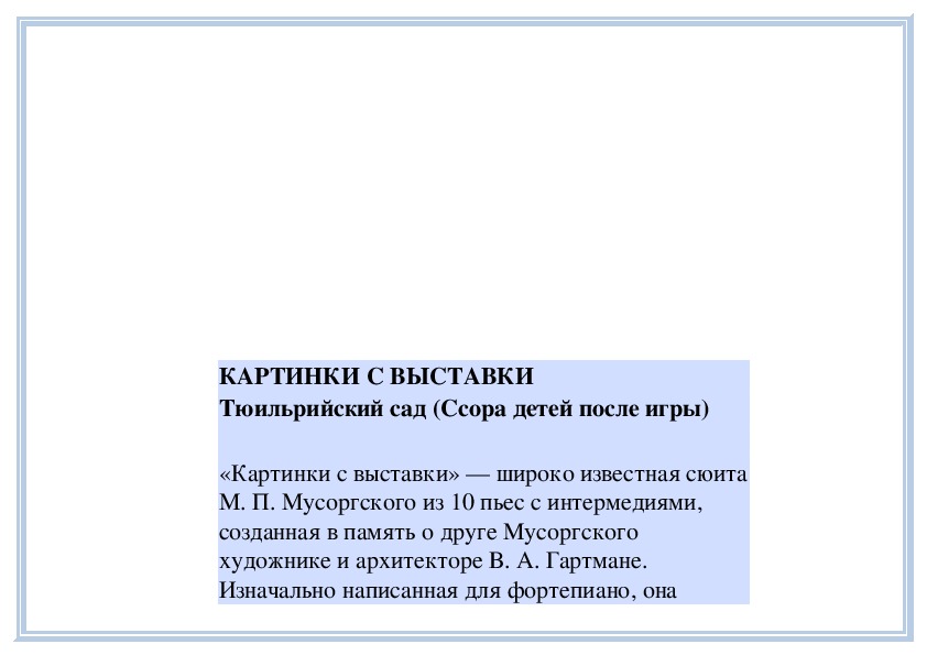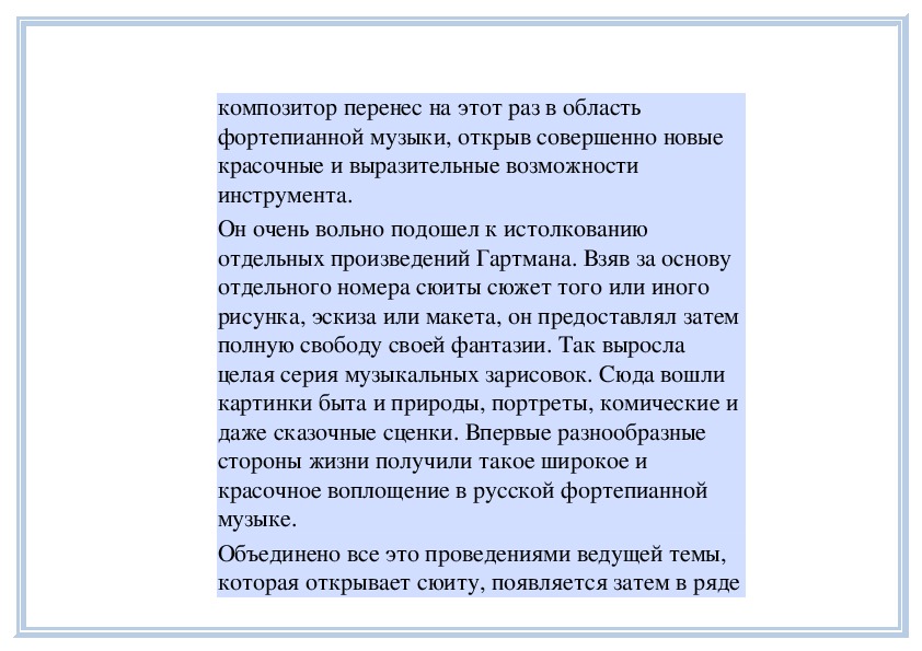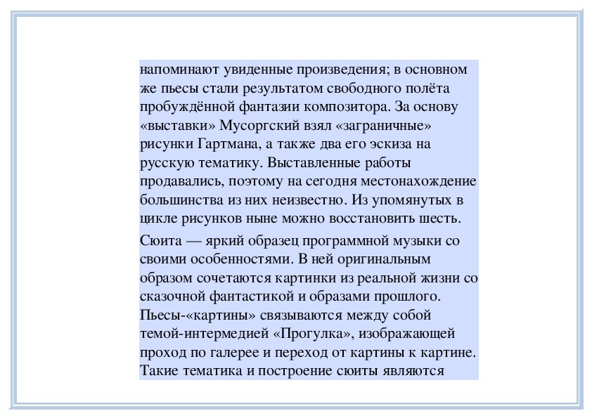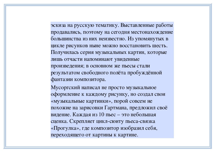 серия музыкальных картин, которые лишь отчастинапоминают увиденные произведения; в основном