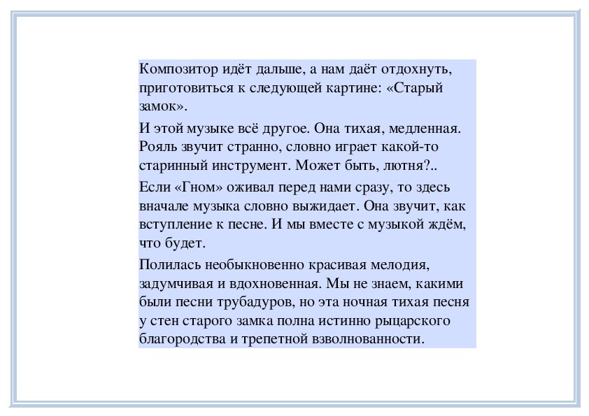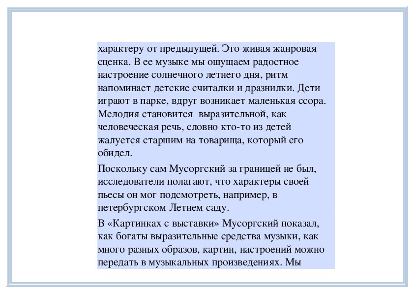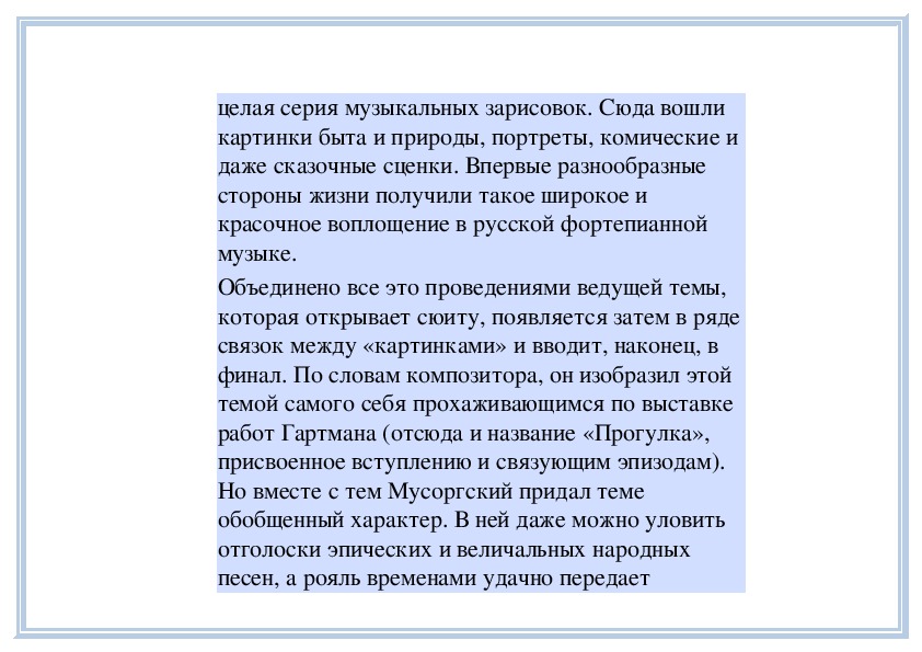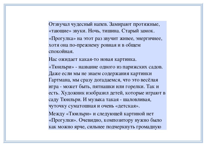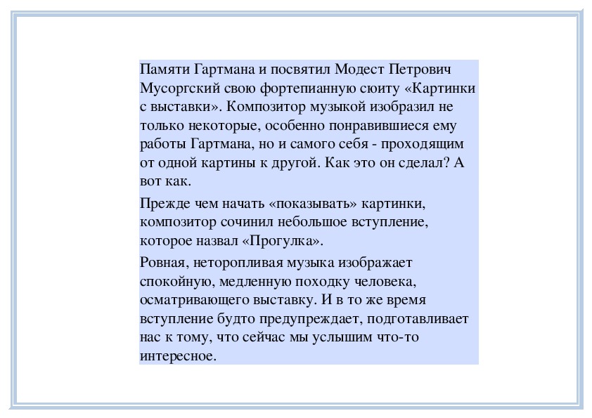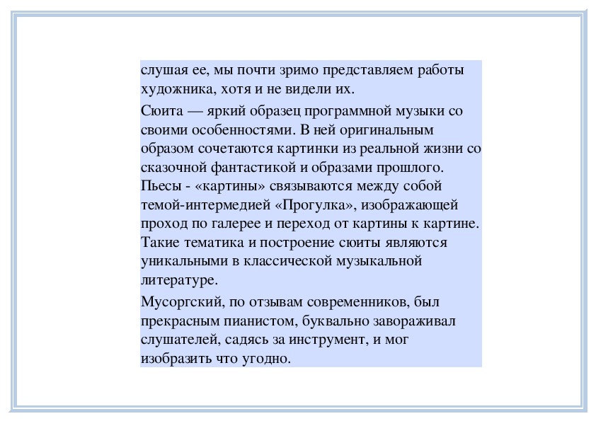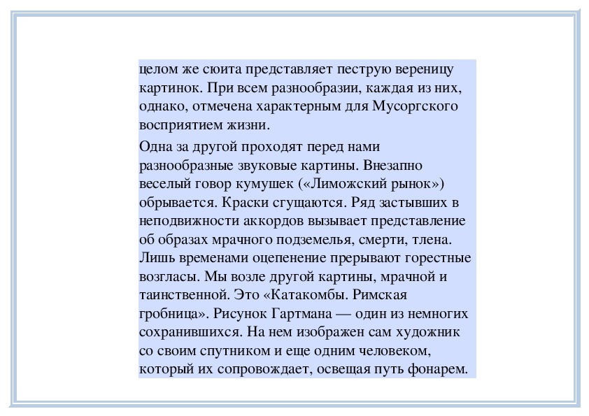 серия музыкальных картин, которые лишь отчастинапоминают увиденные произведения; в основном
