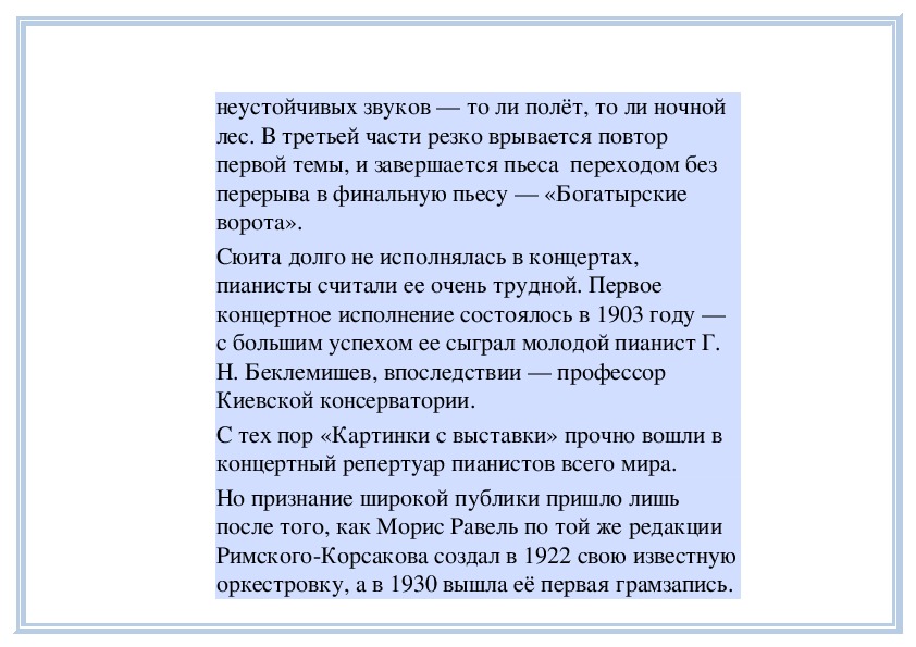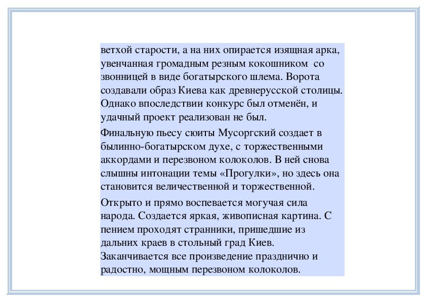 Киеве». Эта 10 часть сюиты основана на эскизе