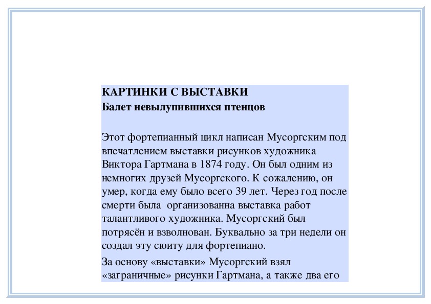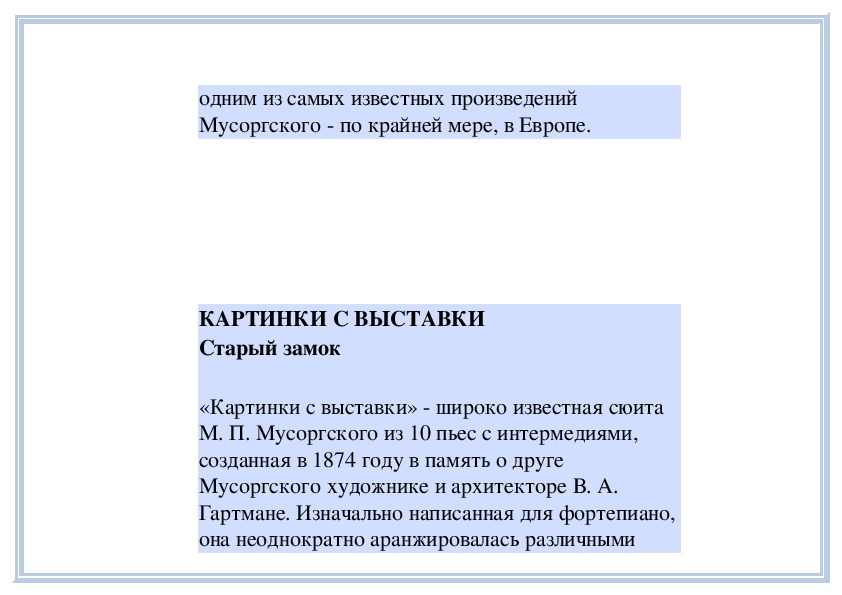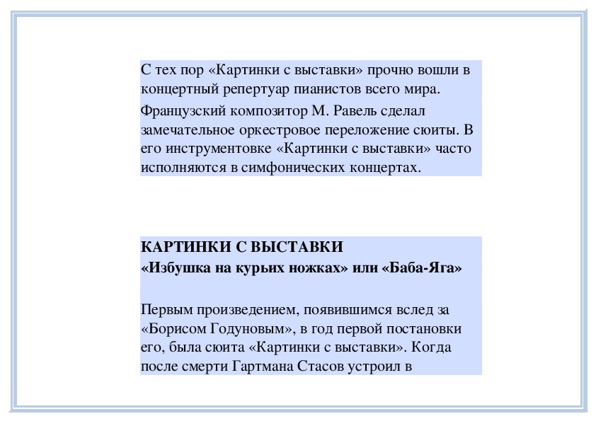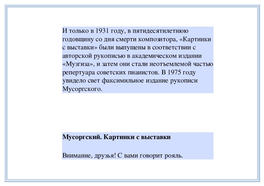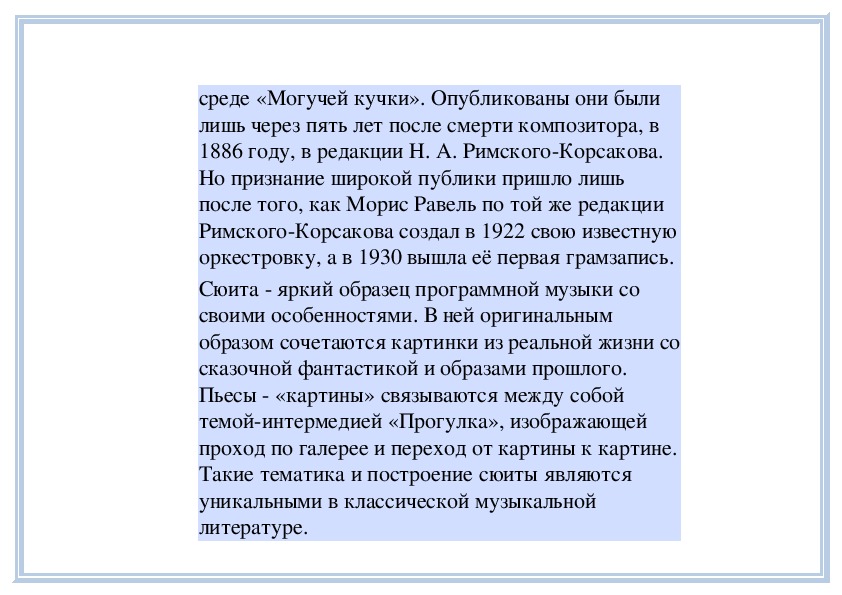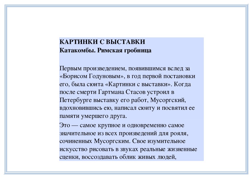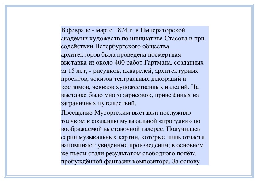 М. П. Мусоргского из 10 пьес с интермедиями,