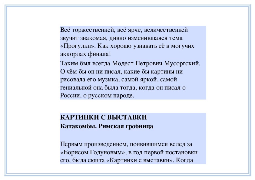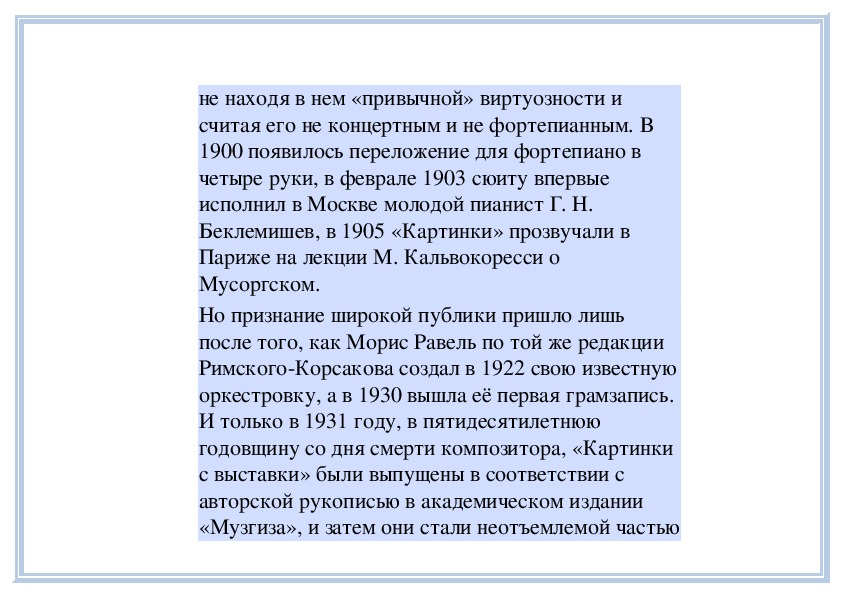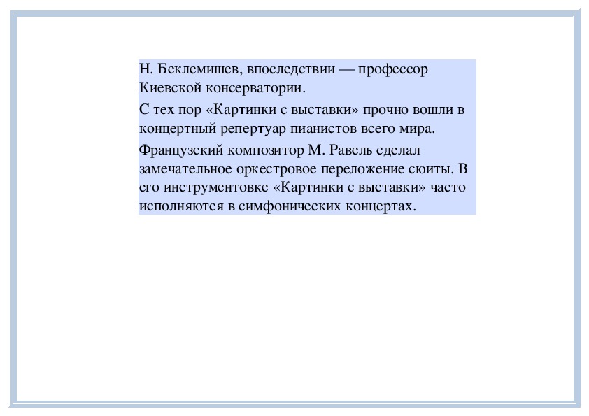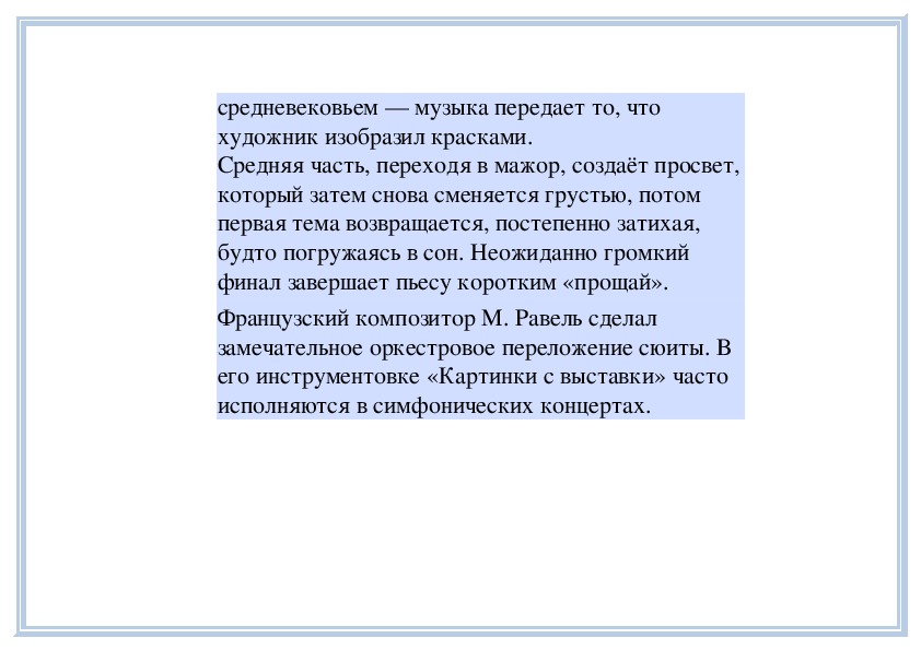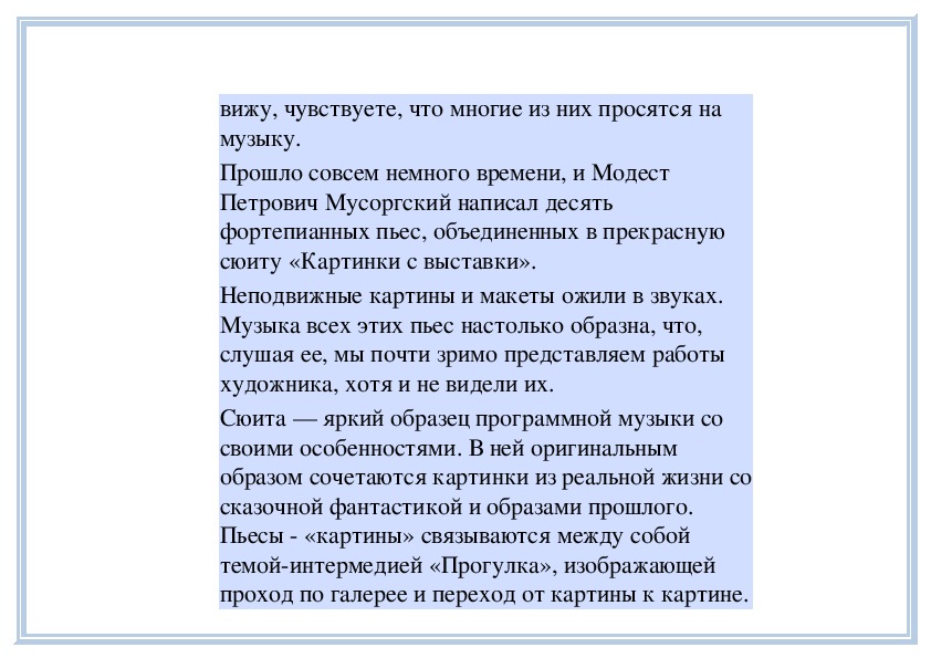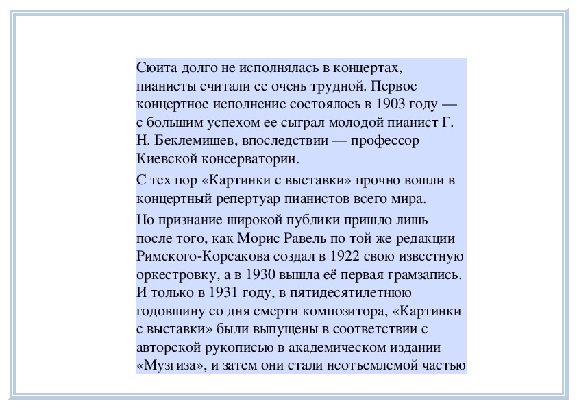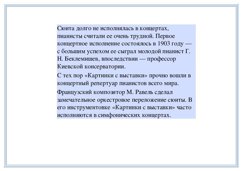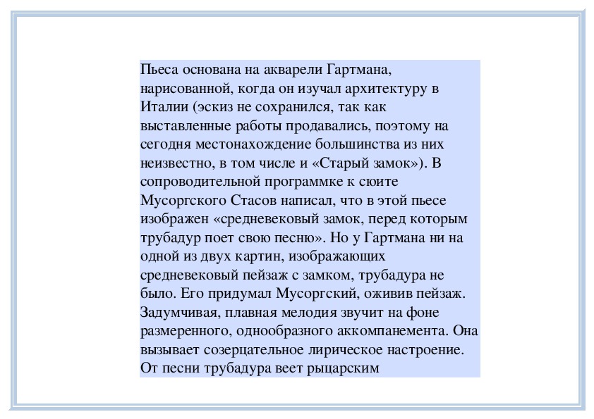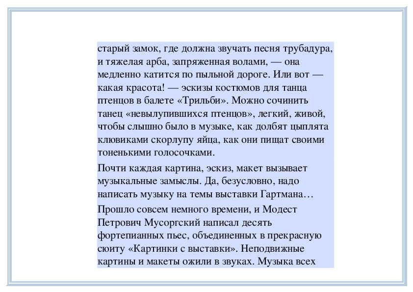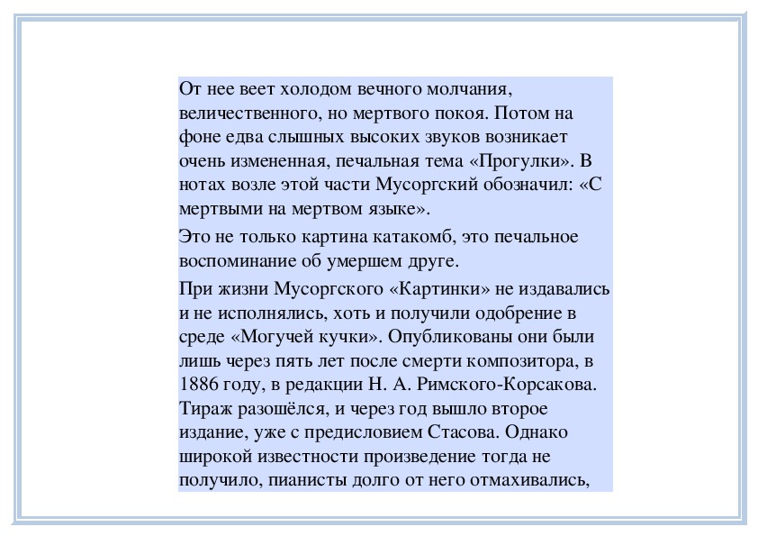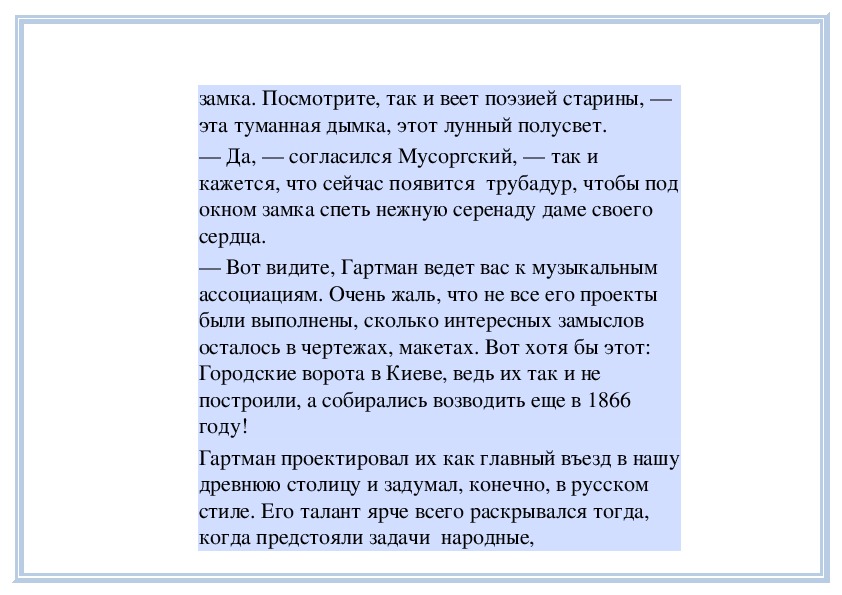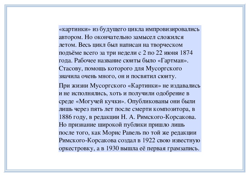 его, была сюита «Картинки с выставки». Когдапосле смерти Гартмана Стасов устроил в