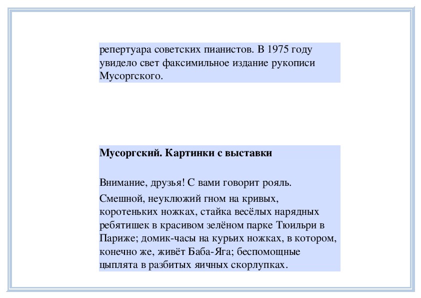 М. П. Мусоргского из 10 пьес с интермедиями,