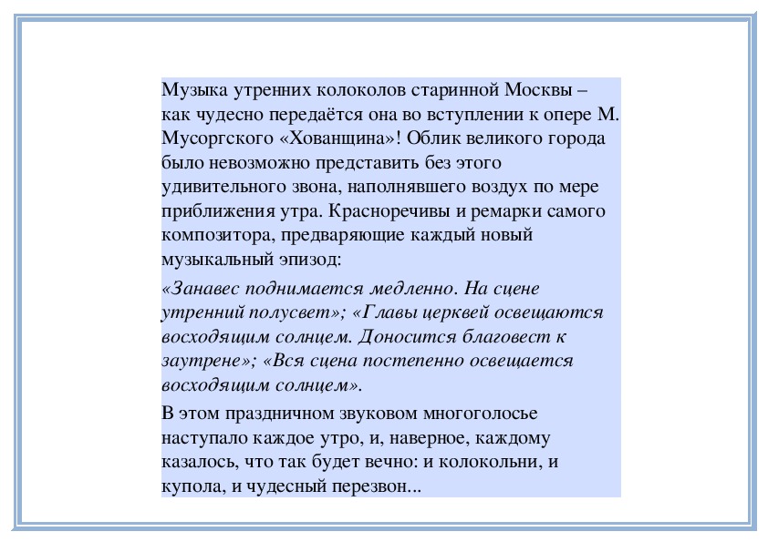 Мусоргского «Хованщина»! Облик великого города