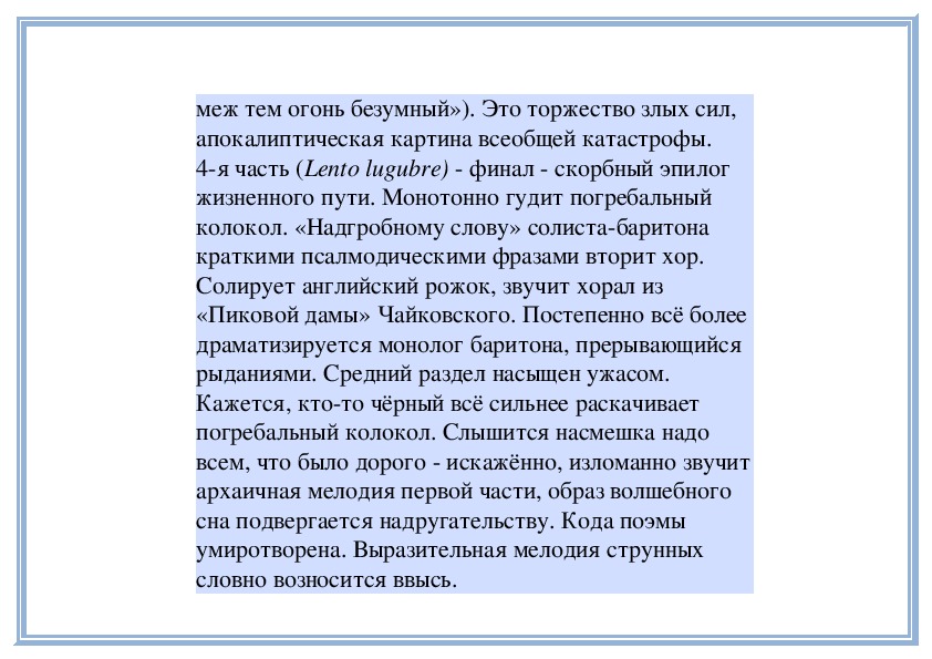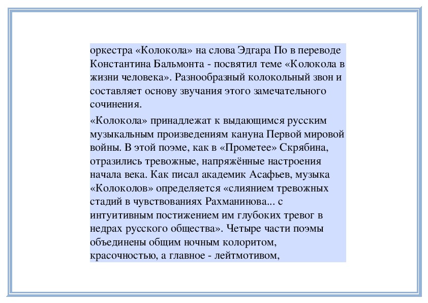поэму для солистов, хора и симфоническогооркестра «Колокола» на слова Эдгара По в переводе