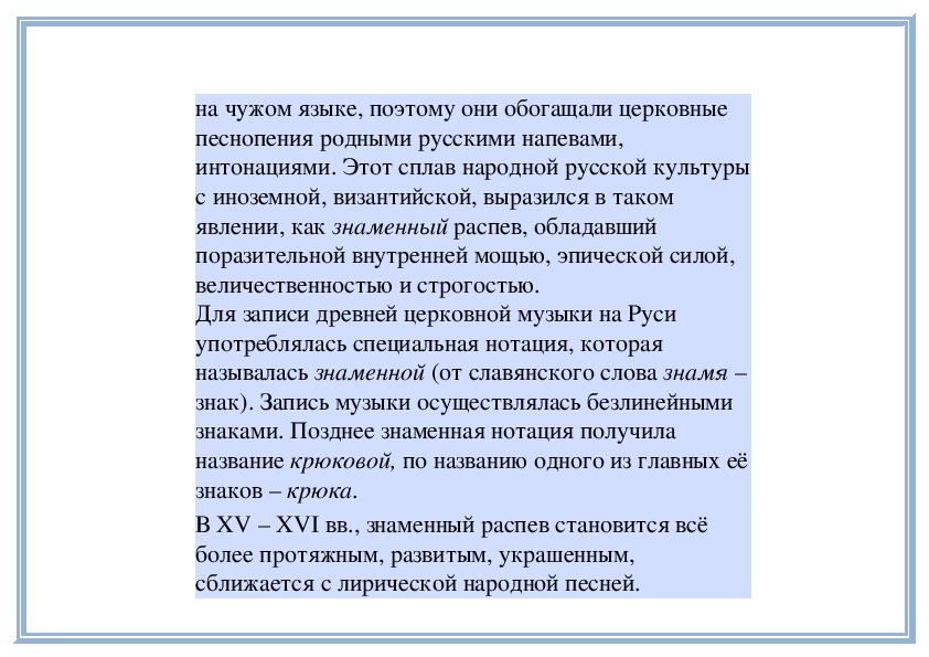 многовековой истории развития знаменного распева.