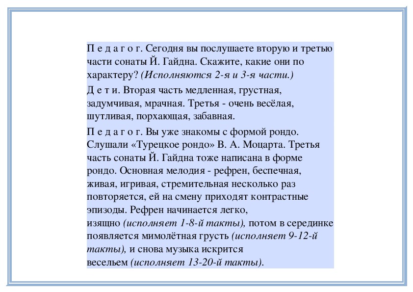 композитора, предваряющие каждый новый