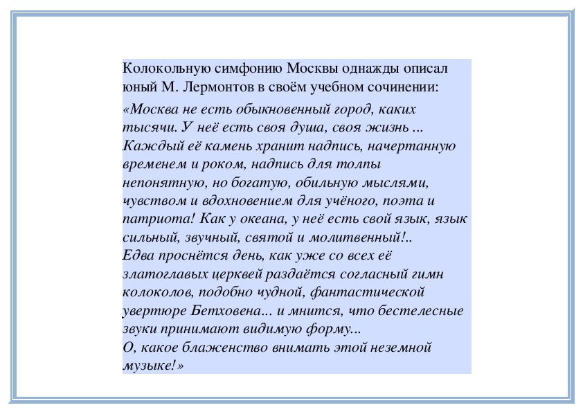 удовольствием узнавали как старых знакомых.Колокольную симфонию Москвы однажды описал