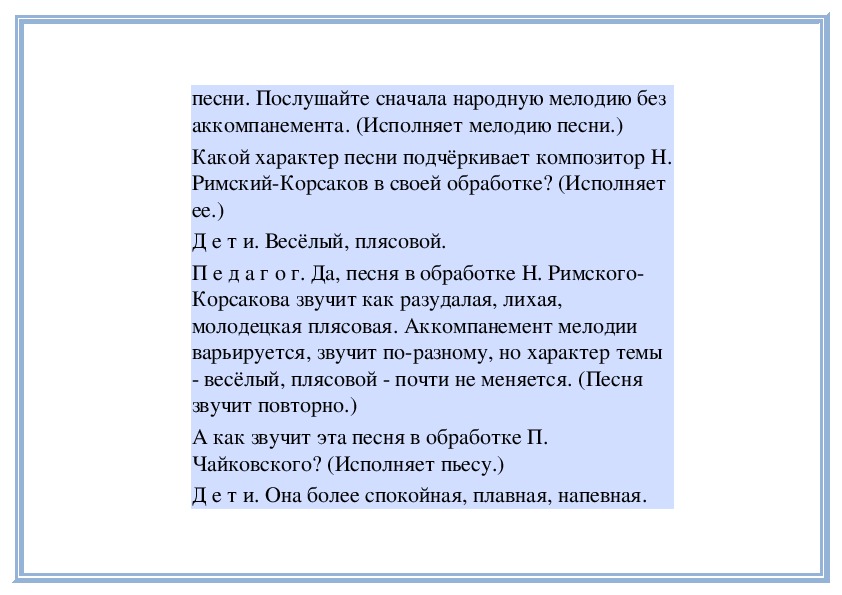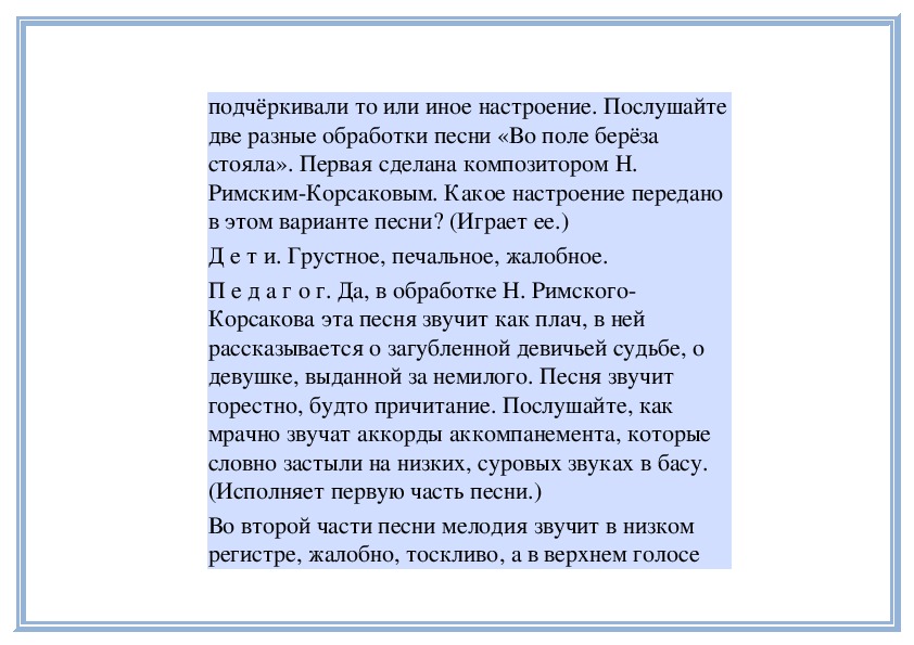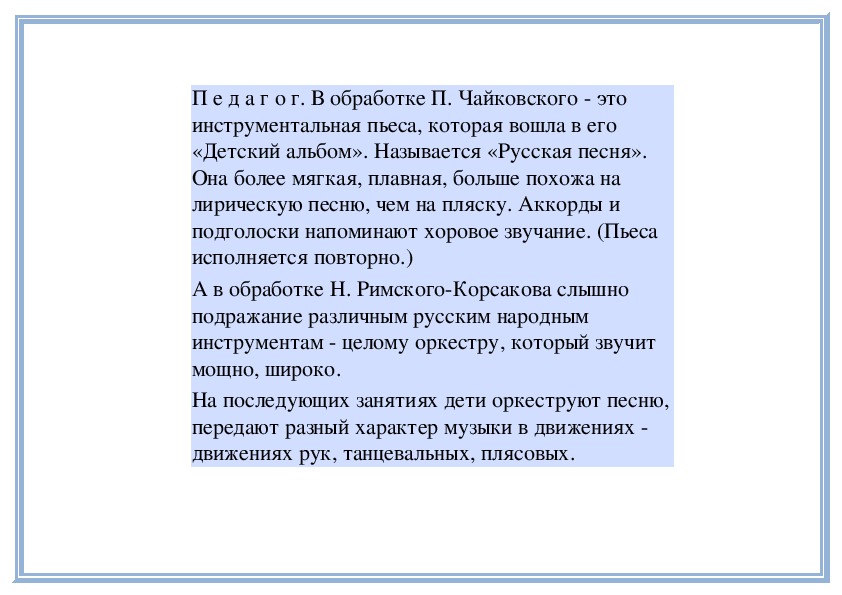 П е д а г о г. Правильно, музыка нежная, светлая,