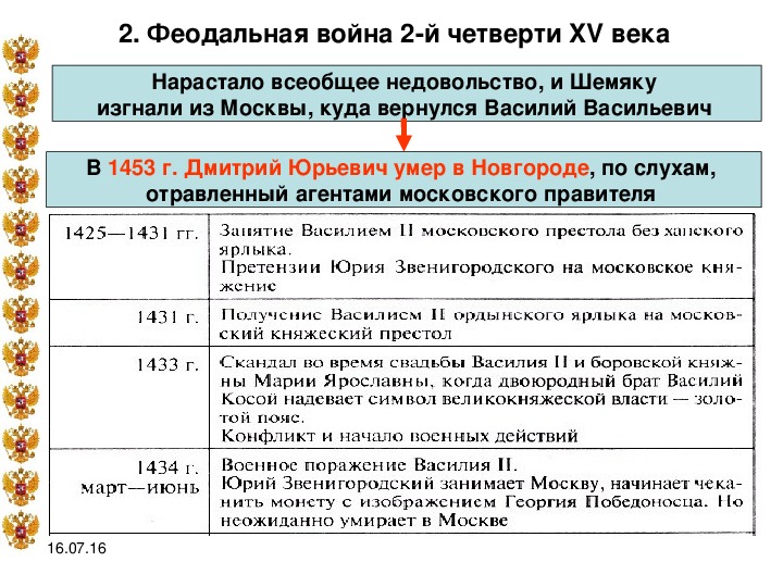 стране. Авторитет Василия II сильно упал, и, пользуясь этим,