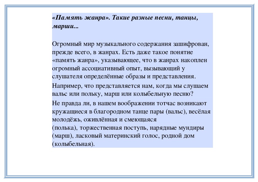 Рассмотрим различные виды образномузыкального