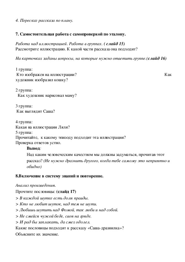 Работа над иллюстрацией. Работа в группах. ( слайд 15)
