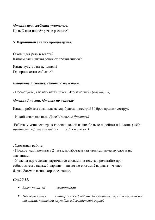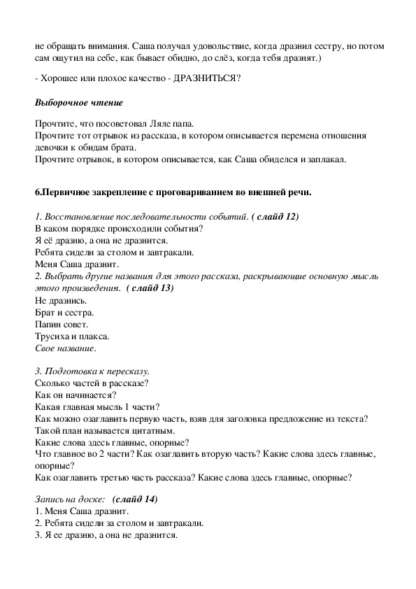 3. Я ее дразню, а она не дразнится.4. Пересказ рассказа по плану.