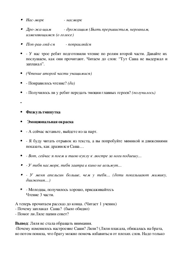 послушаем, как они прочитают. Читаем до слов: “Тут Саша не выдержал и