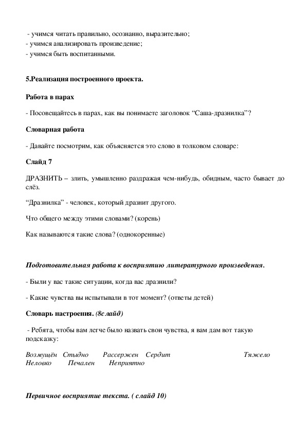 С каким произведением познакомились на уроке? (“Саша – дразнилка”)