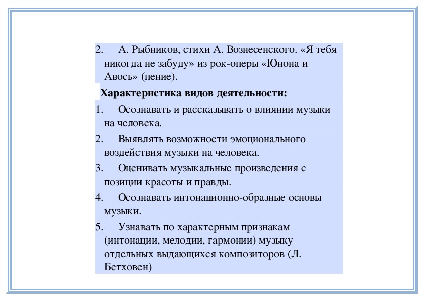 педагога);2. А. Рыбников, стихи А. Вознесенского. «Я тебя