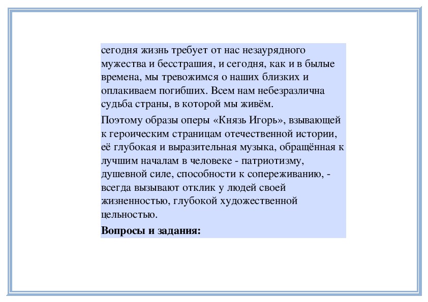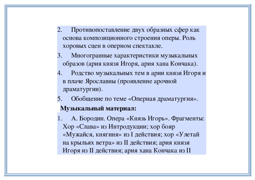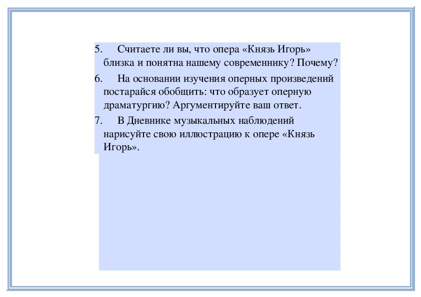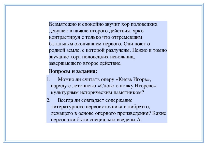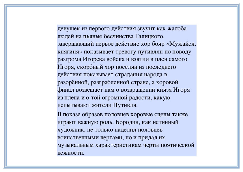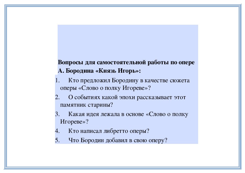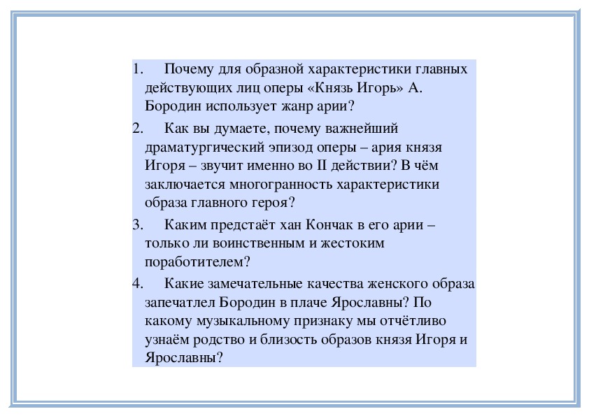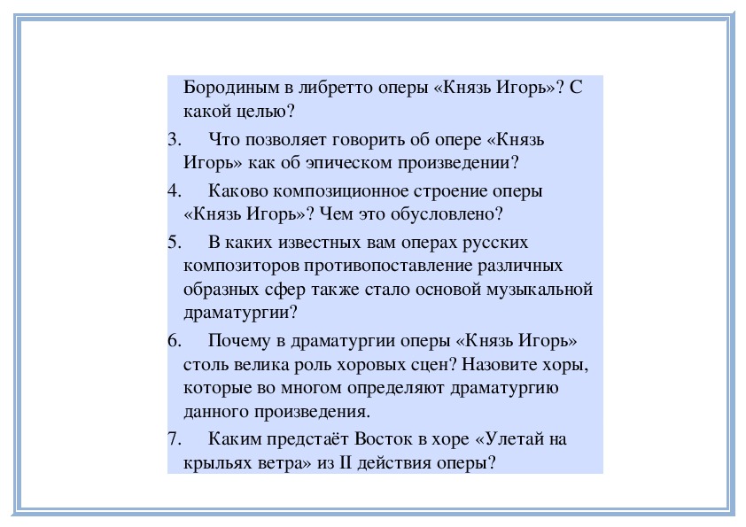 5. Что Бородин добавил в свою оперу?6. Какие особенности таланта Бородина